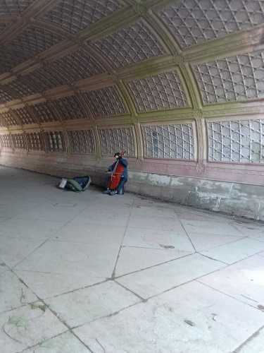 Смотрите какое дерево раскидистое....  Подписанное  А рядом мужичок что-то такое душераздирающее играет.... От чего сердечная чакра сжиматься начинает....  А я уже на выход иду.... Спасибо, что провели эту прогулку со мной ❤️......