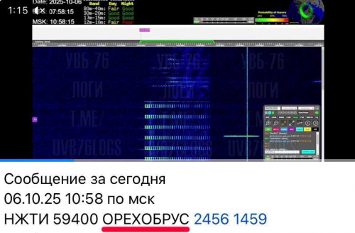 Сегодня, 6 октября, в эфире «Радиостанции Судного дня» прозвучала новая загадочная шифровка. Она была передана в 10:58 по московскому времени и включала слово «орехобрус». Это слово уже появлялось в эфире, в первый раз его передали 11 февраля 2022 года в 06:09.
