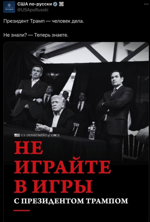 «Не играйте в игры с президентом Трампом»: Госдеп США выступил с угрозой на русском языке