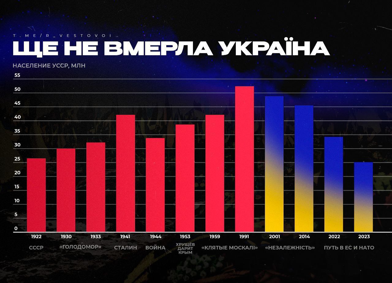Картинка два — визуализация старой картинки Мичмана. За время "нэзалэжности" население бывшей УССР уполовинилось.