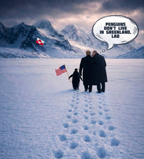 «Пингвины не водятся в Гренландии, парень» Любителям трендов из Белого дома прилетела ответка от российских креативщиков.