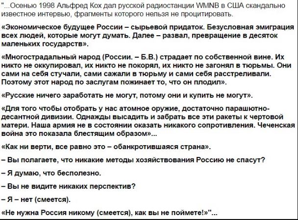 Давно вышедший в тираж русофоб Альфред Кох внесен в список террористов и экстремистов. А ведь в "святые 90-е" этот дегенерат занимал пост вице-премьера правительства РФ.