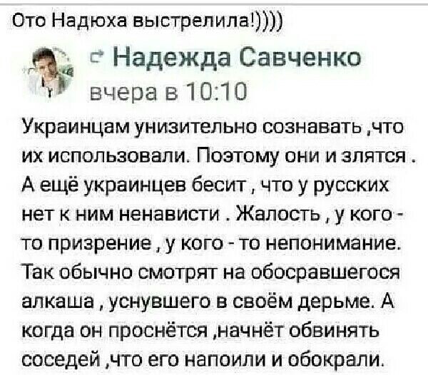 Так что жизни погибших украинцев, процентов на 30 (если не на все 50) лежат и на совести «западников». Короче говоря, вся эта цивилизация… В общем, если бы я был Архангелом Михаилом, то телефонировал бы Господу: Это человечество сломалось, создавай новое! (эмодзи – улыбка с горечью)