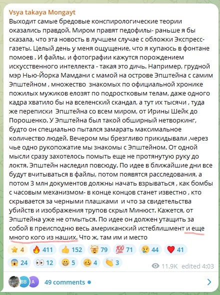 Так он прокомментировал переписку Гейтса с Эпштейном, которая опубликована в документах по делу американского финансиста.